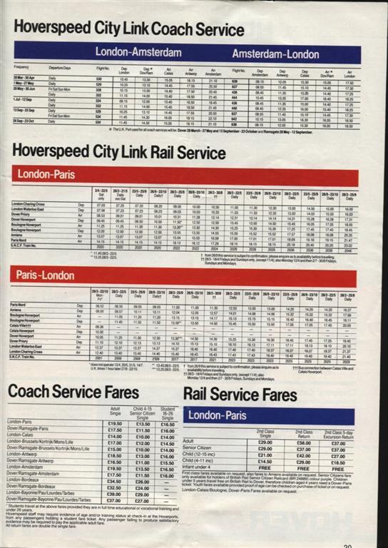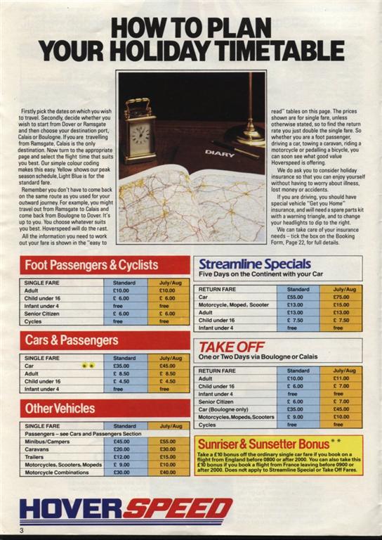 The Hoverspeed 1982 brochure, including timetables