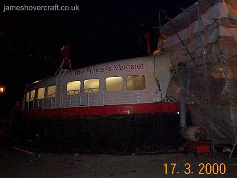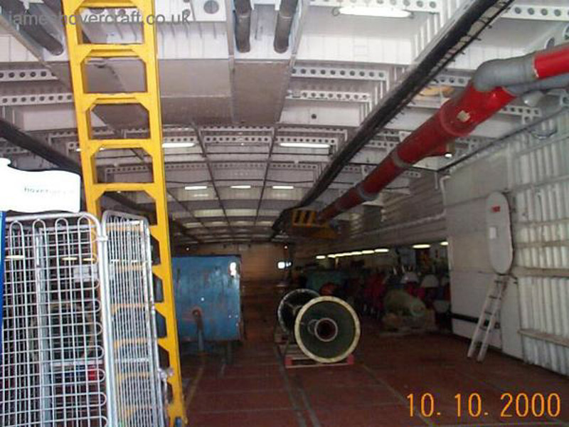 SRN4 approaching the engineering sheds, ready to align with the seven hydraulic jack rams to be raised up for skirt maintenance James Rowson Empty car-deck, being sorted for the evening James Rowson Raised up on jacks to further than hover-height, allowing easy skirt access James Rowson In-situ and still warm, the inner starboard engine, Engine No. 2 James Rowson Propeller and fin in the paint shop, ready for fitting to a craft James Rowson Rolls-Royce Proteus engine waiting in the shop, ready to be swapped out with an operating engine if needed James Rowson Fin re-spraying in the paint shop James Rowson Looking aft along the craft, partially raised up on jacks James Rowson Inside the skirt of the SRN4 whilst on ramps James Rowson The hydraulics control panel for the seven jack rams, to raise this 200+ tonne craft nearly 30 feet into the air James Rowson One of the seven hydraulic rams keeping the SRN4 above our heads! James Rowson The Princess Margaret (GH-2006) within protective wrapping for her annual deep maintenance James Rowson The Princess Margaret (GH-2006) within protective wrapping for her annual deep maintenance James Rowson The car deck of the SRN4 equipped with spare parts, the craft now retired from service James Rowson Access to the aftermost electronics bay, just to the side of the port air inlet above the lift-fan James Rowson Electronics bay complete with colour-coded three-phase supplies James Rowson Lift fan on the car deck for spare parts - note the size of it compared to my hand! James Rowson