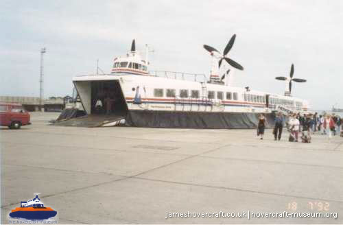 SRN4 hovercraft arriving at Dover