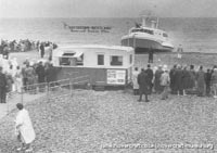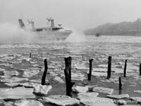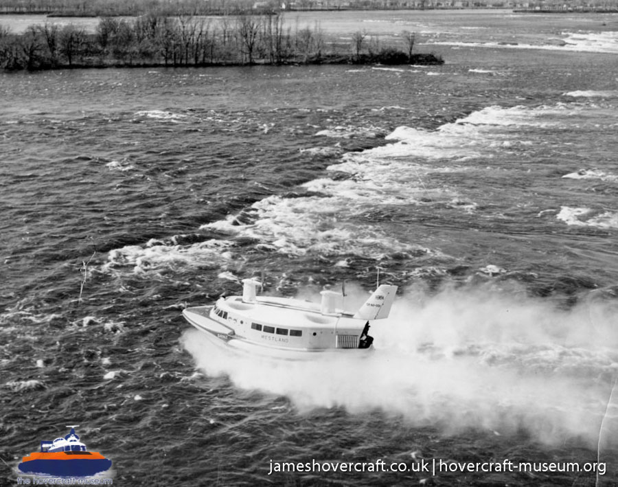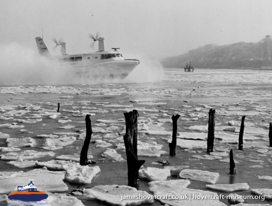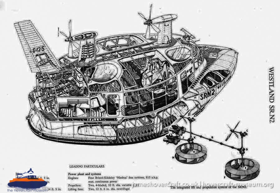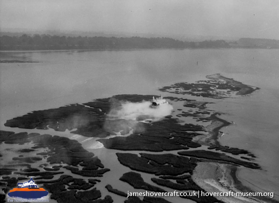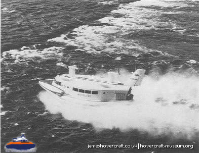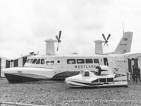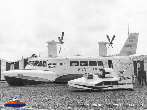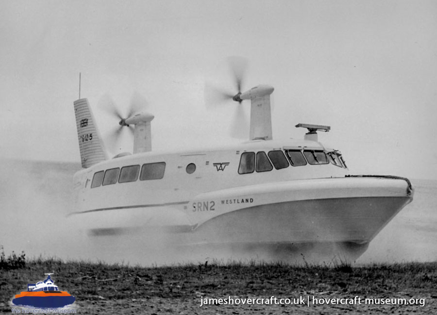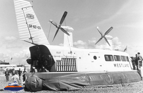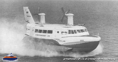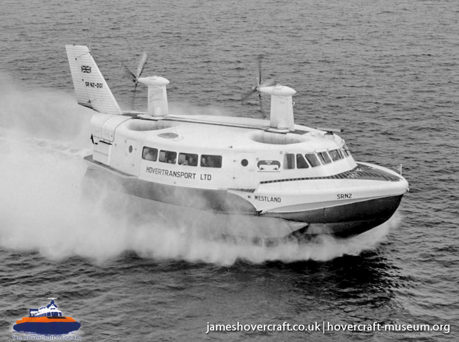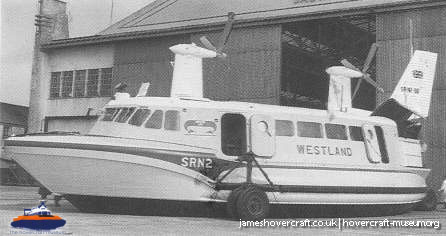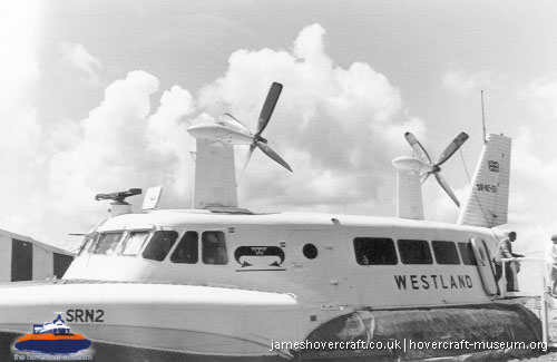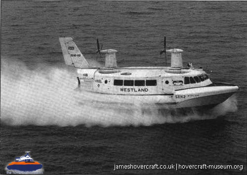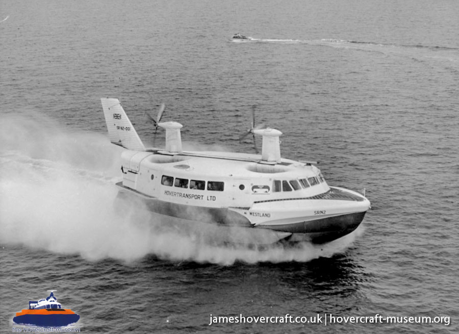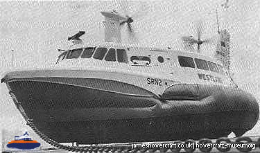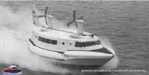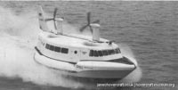 Southdown Motor Services and Westland Aircraft ran the SRN2, a 48 seater craft, between Eastney (Google Maps) to Ryde (Google Maps) across the Solent, in 1963/4. This experimental service was a precursor to the route still used by today's AP1-88s operated by Hovertravel. The SRN2 was replaced after 30,000 passengers proved the concept viable, with the SRN5 and later SRN6 and AP1-88. The SRN2 underwent various changes during its short operational life such as the deepening of the skirt further to air cushion research going on at the time. Features of the SRN2 are quite similar to those on the SRN4, in terms of the design of some of its parts such as the propeller pylons, air intakes and rudders. The propeller pylons were also used on the SRN3, a craft primarily used by the British Armed Forces' IHTU (Inter-service Hovercraft Trials Unit).